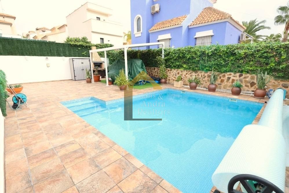 Te presentamos este magnífico chalet independiente en Villamartín, ubicado frente a un parque en una parcela de 250 m², que combina amplitud, privacidad y una excelente calidad de vida en una de las zonas más demandadas de la Costa Blanca. La vivienda, con una superficie construida de 180 m² distribuidos en dos alturas más sótano, ofrece una distribución cómoda y funcional con 4 amplios dormitorios y 3 baños completos. Dispone de un gran y luminoso salón-comedor ideal para reuniones familiares, una amplia cocina independiente totalmente equipada y una acogedora terraza acristalada perfecta para disfrutar durante todo el año. El sótano, con entrada independiente y baño propio, ofrece un espacio versátil que puede utilizarse como despacho, apartamento para invitados o zona de ocio. En el exterior, la propiedad cuenta con una preciosa piscina privada, zona de barbacoa y entrada para vehículo, creando un entorno perfecto para disfrutar del clima mediterráneo con total privacidad. Una vivienda ideal tanto como residencia habitual como para vacaciones, cerca de campos de golf, servicios y playas.