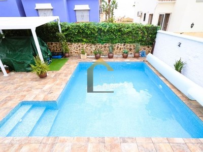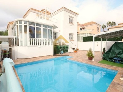 Te presentamos este magnífico chalet independiente en Villamartín, ubicado frente a un parque en una parcela de 250 m², que combina amplitud, privacidad y una excelente calidad de vida en una de las zonas más demandadas de la Costa Blanca. La vivienda, con una superficie construida de 180 m² distribuidos en dos alturas más sótano, ofrece una distribución cómoda y funcional con 4 amplios dormitorios y 3 baños completos. Dispone de un gran y luminoso salón-comedor ideal para reuniones familiares, una amplia cocina independiente totalmente equipada y una acogedora terraza acristalada perfecta para disfrutar durante todo el año. El sótano, con entrada independiente y baño propio, ofrece un espacio versátil que puede utilizarse como despacho, apartamento para invitados o zona de ocio. En el exterior, la propiedad cuenta con una preciosa piscina privada, zona de barbacoa y entrada para vehículo, creando un entorno perfecto para disfrutar del clima mediterráneo con total privacidad. Una vivienda ideal tanto como residencia habitual como para vacaciones, cerca de campos de golf, servicios y playas.
